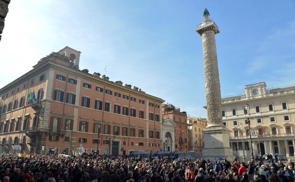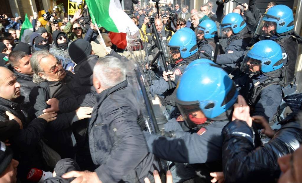当地时间2017年2月21日,意大利罗马,当地出租车司机组织罢工,示威者与警察冲突。