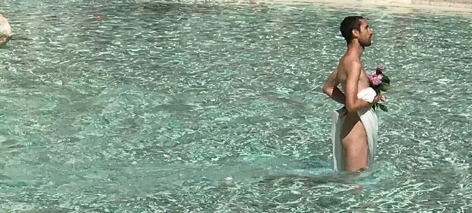 上周六(22日),又有一名西班牙男子裸身进入许愿池中,并抛撒鲜花。(《许愿池又双叒现裸男! 披白纱, 扔鲜花, 优雅戏水: 我只想赎罪!》)