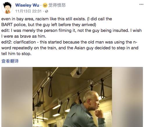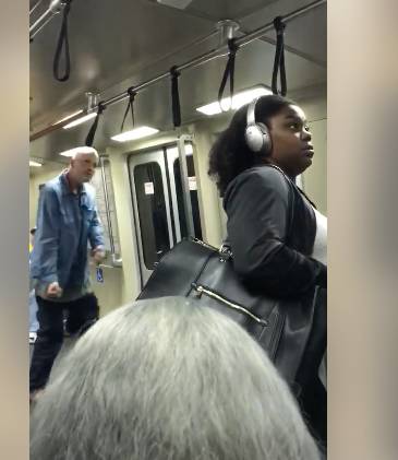 就在双方就要干起来的瞬间,有人出来劝架了,不是车厢内占大多数的白人,还居然是一位黑人大妈。这架最后才没打成,路人们也纷纷拨打电话报警,最后白人在虚张声势的挥了几拳后逃下捷运。
