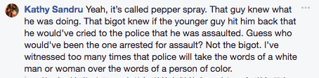 没有那么简单,这位白人老兄一定知道他在做什么。如果这个年轻的亚裔反击了,他一定会跑到警察面前去哭诉自己被袭击了。你们猜猜谁最后会被警察,因为袭击他人罪而拘捕?一定不会是那个白人偏执狂!我看过太多次,遇到这种事情,警察三言两句就把白人的错给“对付”过去了,而对于有色人种呢,他们会职责的更多。