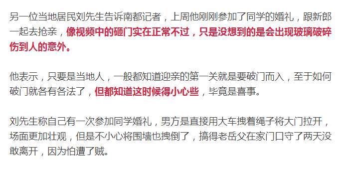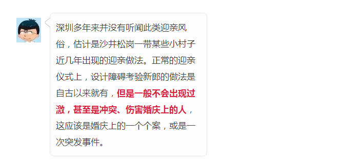 他表示,此种过激行为,并不符合民俗的范畴,他同时对于砸门事件感到“不可思议”。认为这是一种陋习,不应被倡导!