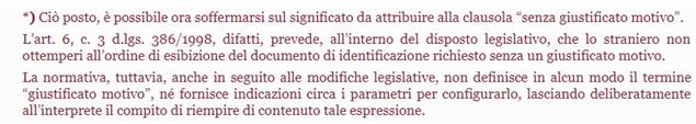 文章原文链接: http://www.dippol.it/home/domande-e-risposte/31-generale/108-i-motivi-che-giustificano-lomessa-esibizione-di-documenti-da-parte-dello-straniero