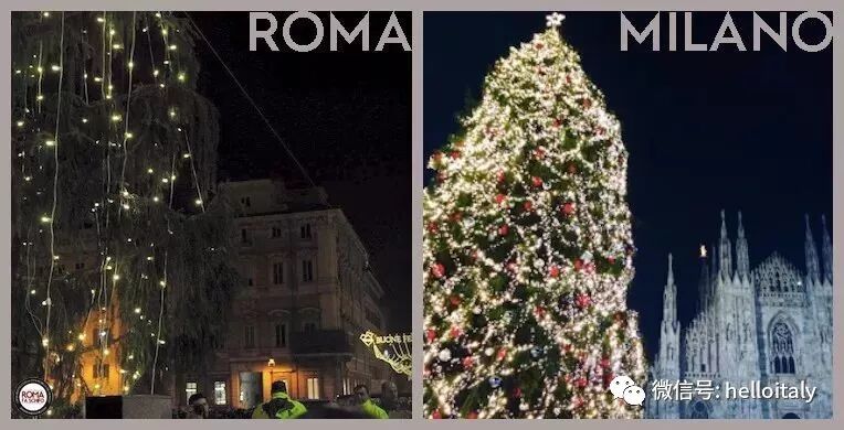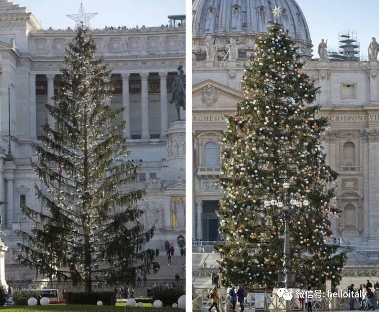 左:罗马威尼斯广场圣诞树 右:梵蒂冈广场圣诞树