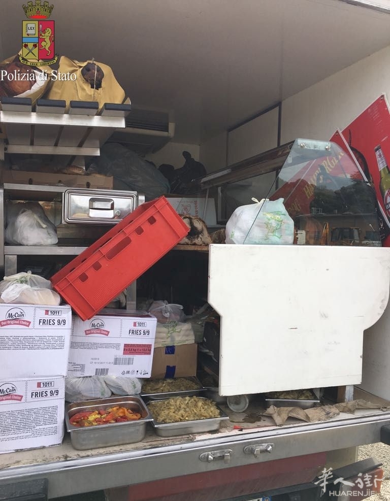 这些食品由于没有可追朔性来源以及储存的温度是常温而不是低温,因此都被国家公路警方于在ASL 7锡耶纳卫生局人员的配合下查扣。该名华人还因为小货车超载以及车胎不合理,因此还被处以一笔约1300欧元的罚款。(alexzou编译)