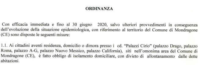 目前,这个社区已经有10人核酸检测呈阳性,坎帕尼亚大区主席Vincenzo De Luca将Palazzi Cirio区划为“红色区域”,拉上警戒线,3个入口处均有军警看守,整个区域被隔离起来,这里的居民也都要在家隔离,直至6月30日。隔离期间,市政府将为居民提供食物,而该市所有市民在户外也必须佩戴口罩。