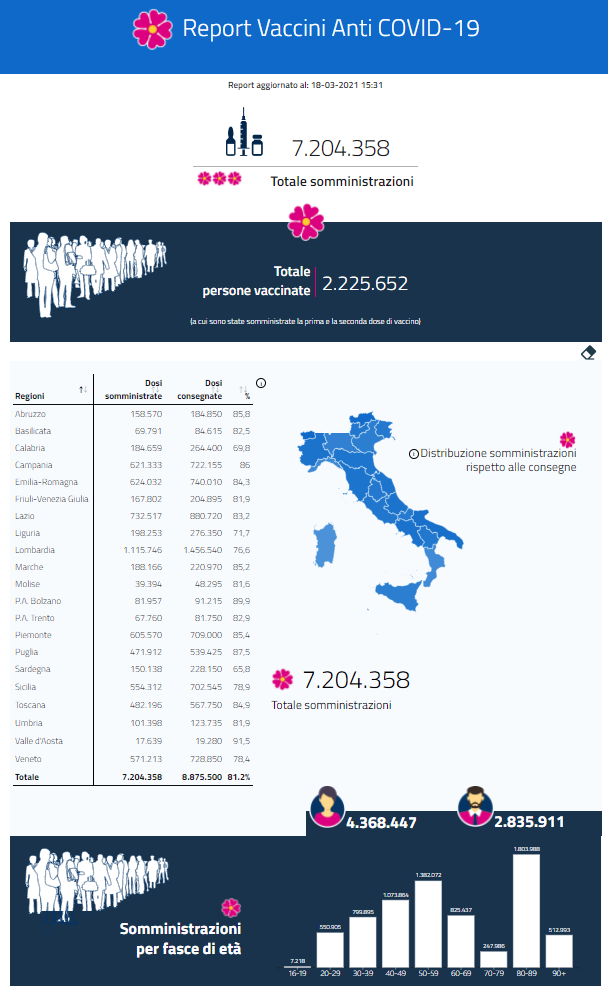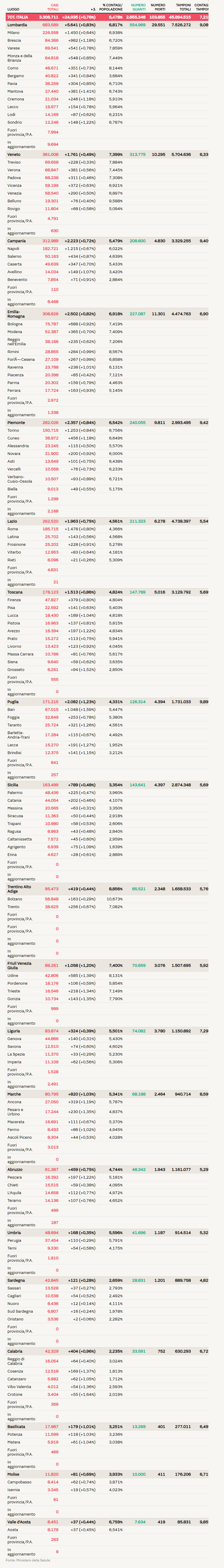 意大利确诊数据:累计确诊3.306.711人, 死亡103.855人, 治愈2.655.346人