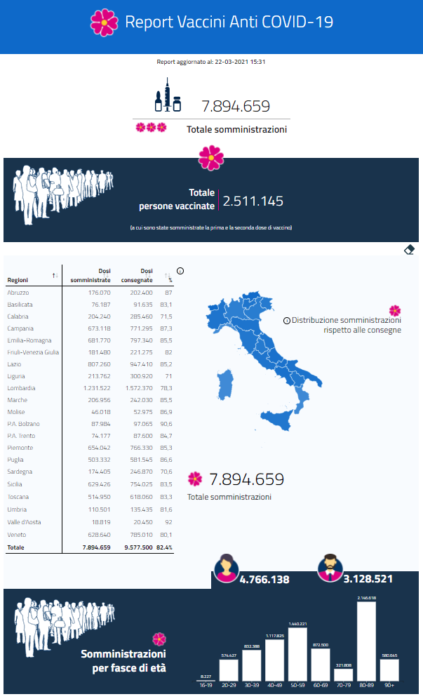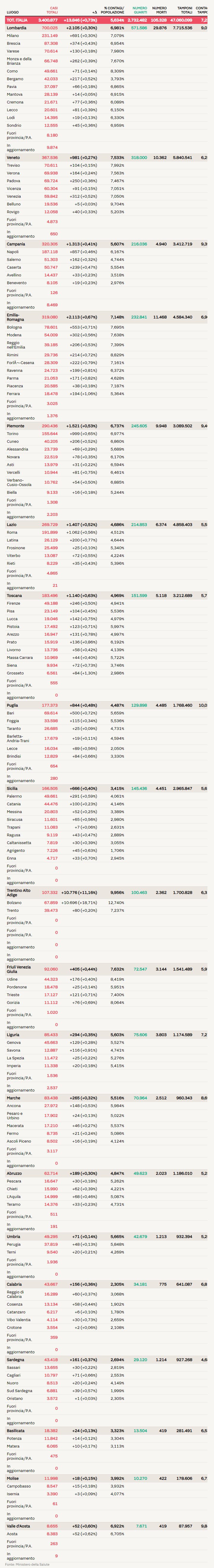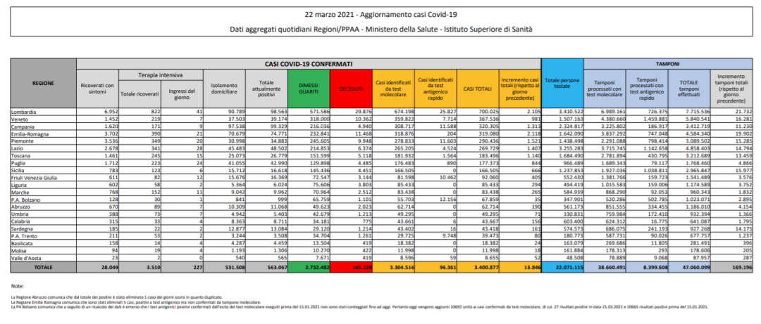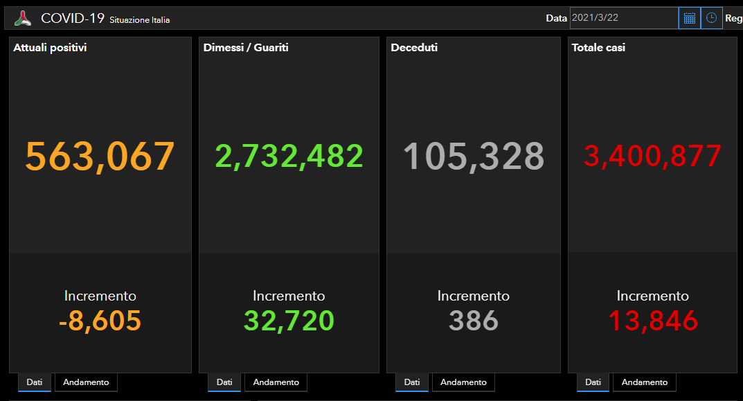 意大利确诊数据:累计确诊3.400.877人, 死亡105.328人, 治愈2.732.328人!
