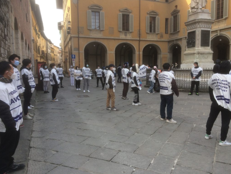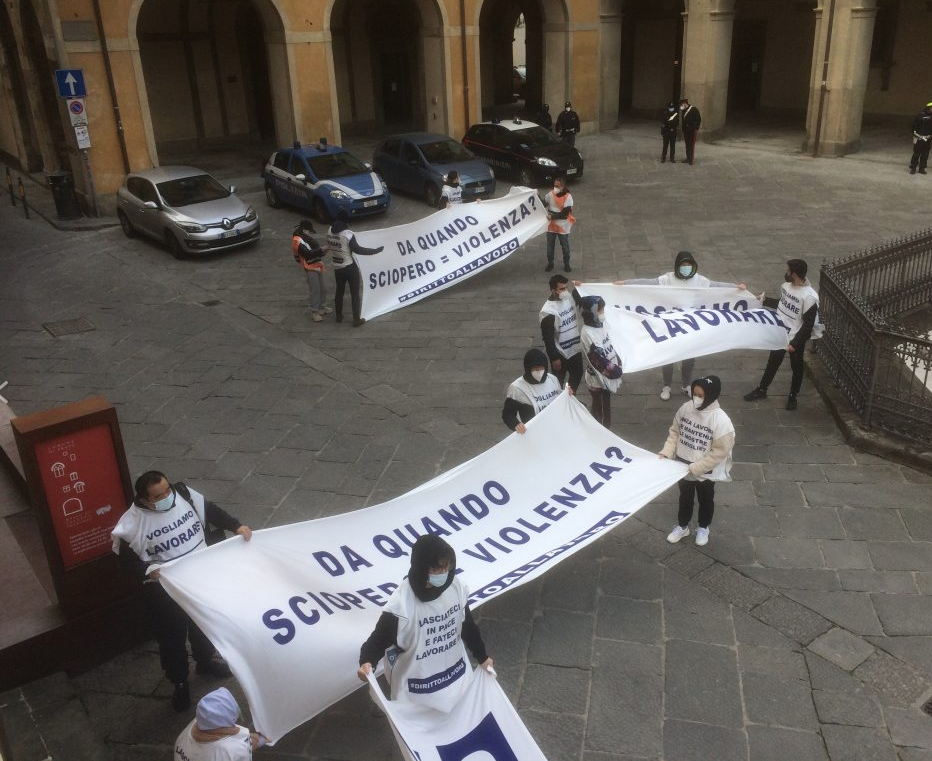 华人印染厂Texprint的员工们来到Prato市政府广场进行抗议,该工厂位于Via Sabadell,两个月以来该工厂的在职员工一直面临着非常严峻的形势,大约15名员工在Si Cobas工会的支持下一直和他们进行着拉锯战。直到现在该工厂还是看不到一条出路。
