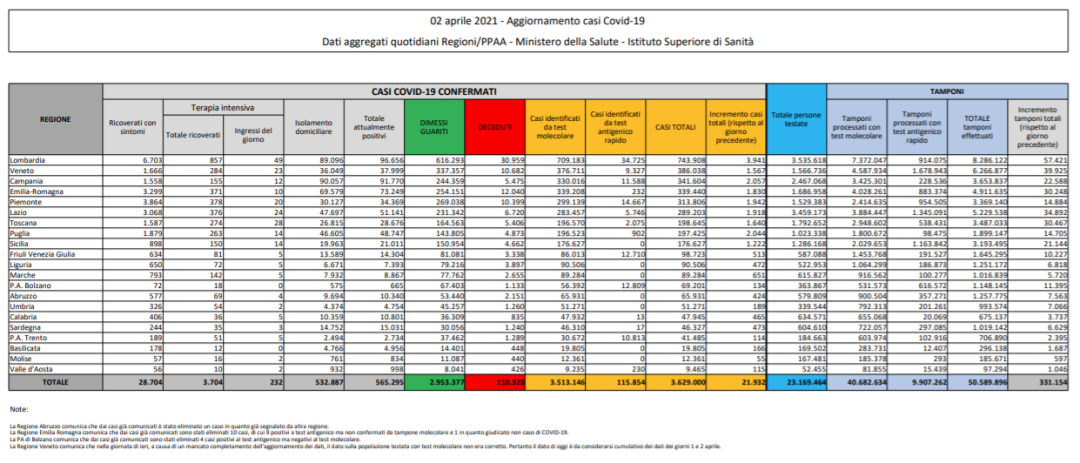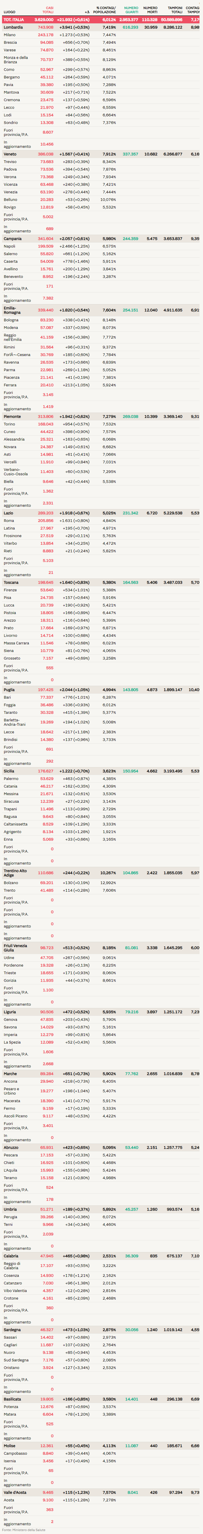 意大利确诊数据:累计确诊3.629.000人, 死亡110.328人, 治愈2.953.377人!
