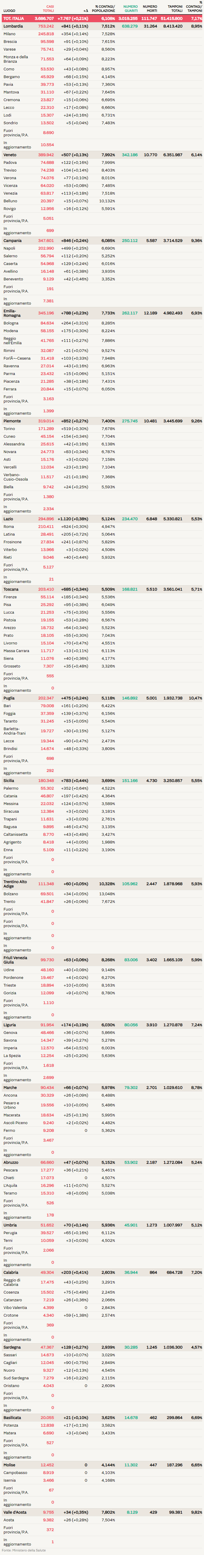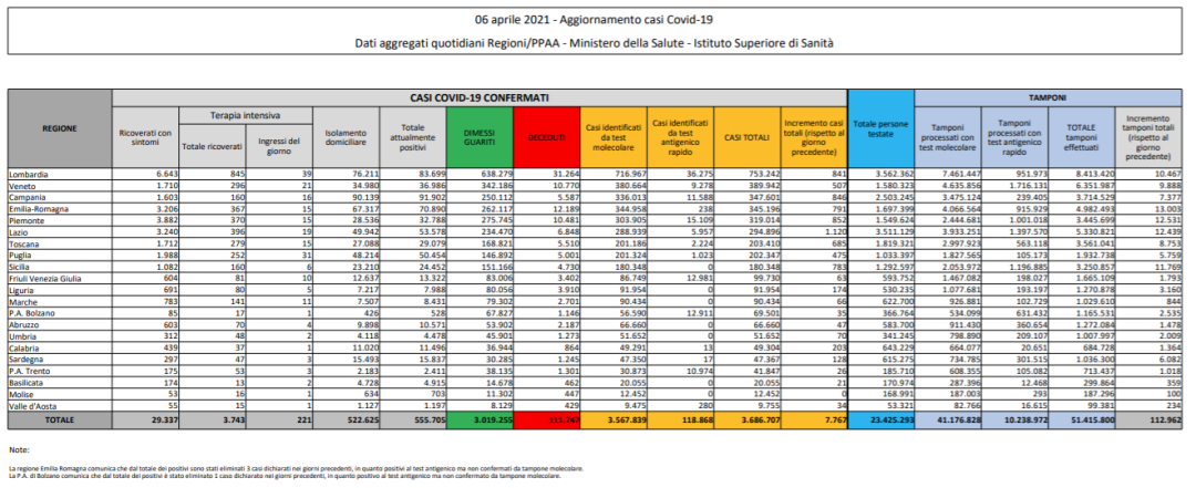 意大利确诊数据:累计确诊3.686.707人, 死亡111.747人, 治愈3.019.255人!