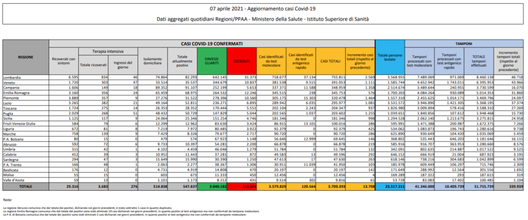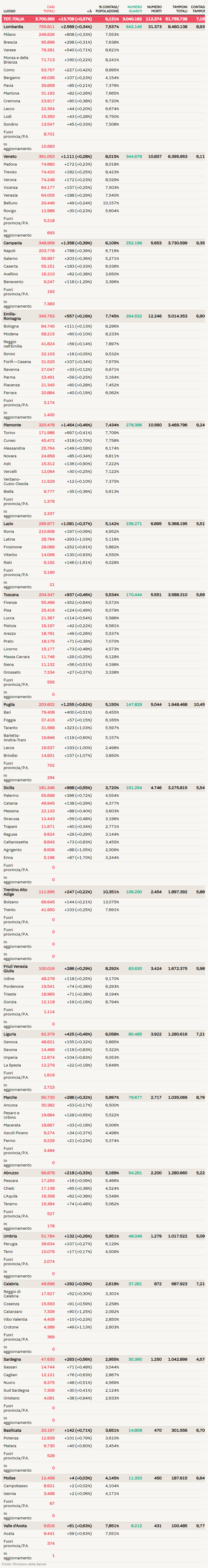 意大利确诊数据:累计确诊3.700.393人, 死亡112.374人, 治愈3.040.182人!