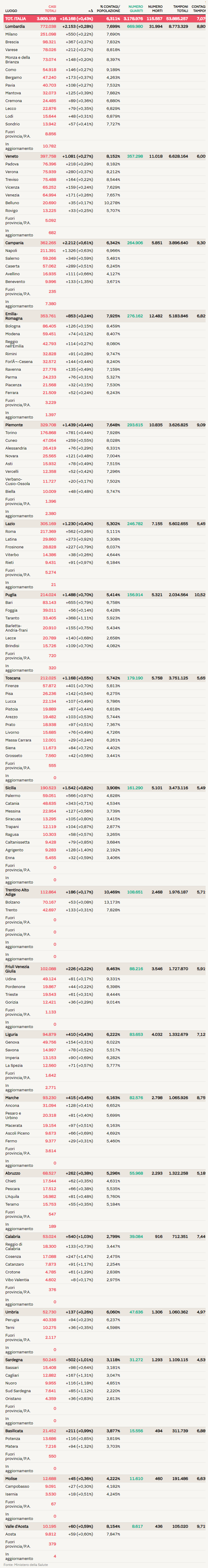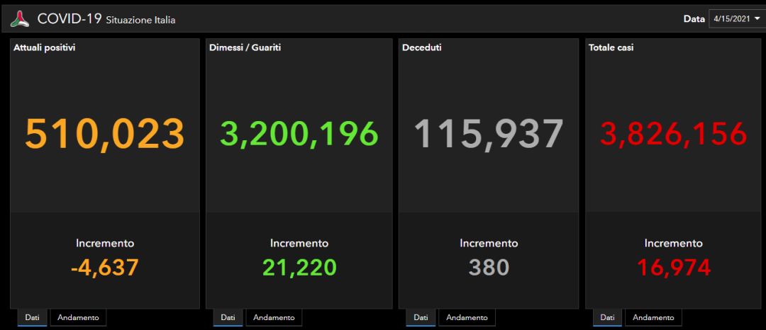 意大利确诊数据:累计确诊3.826.156人, 死亡115.937人, 治愈3.200.196人!