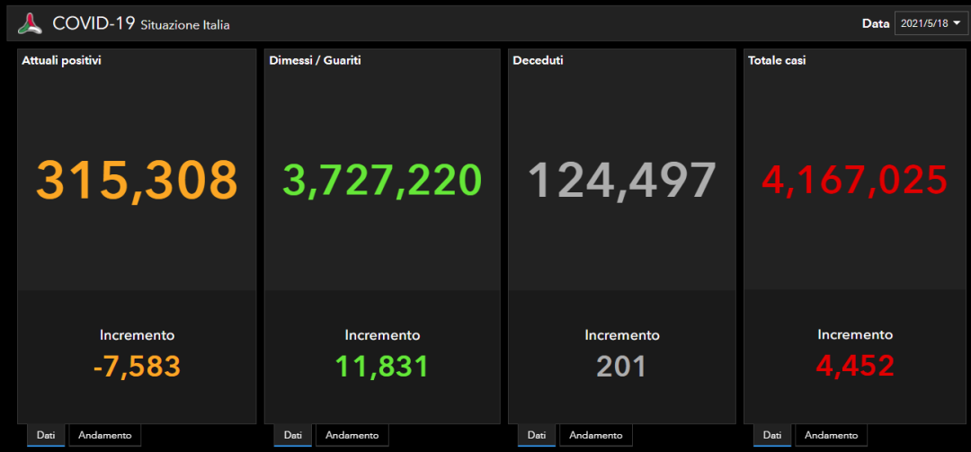 意大利确诊数据:累计确诊4.167.025人, 死亡124.497人, 治愈3.727.220人!