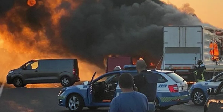 事发在昨晚8点左右,A1高速公路变成了人间地狱,这是意大利车流量最大的一条高速公路,就在Modena和Bologna之间的 Sant’Anna di San Cesario 路段。