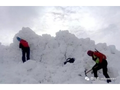 救援人员在雪崩现场寻找失踪人员。...