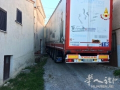 有路不走非要钻小巷安科纳一卡车被卡小镇中心街道