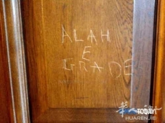 里米尼一教堂大门被人刻上“真主是伟大的”