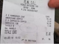 罗马一酒吧再现开价账单