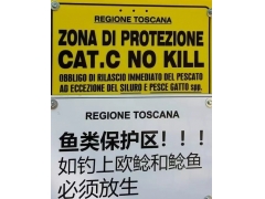 普拉托河段竖立警示牌,中文提醒华人禁止钓鱼
