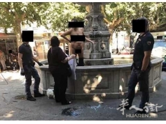 的里雅斯特一老太太裸体在喷池水中洗澡被捕