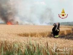 威尼斯一片20公顷的麦田发生大火,大片居民被紧急疏散