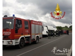 罗马一校车避让迎面车辆不慎冲出公路 庆幸无人伤亡