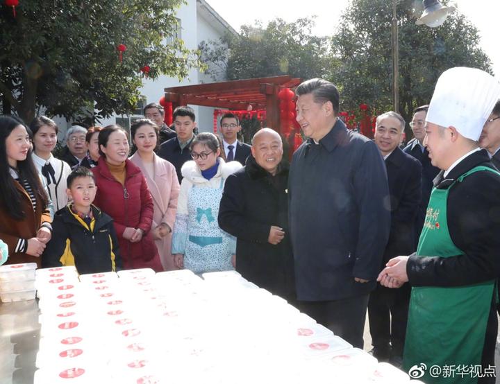 成都市郫都区战旗村里喜气洋洋,村民们正在村里布设的春节一条街上照全家福、写春联、做汤圆。看到习近平总书记来了,大家兴高采烈地向总书记问好。正在照全家福的一位老人握着总书记的手,激动地说:“您是我们的好领袖,中国人民的福星。”总书记答道:“谢谢,我是人民的勤务员,是为人民服务的。”