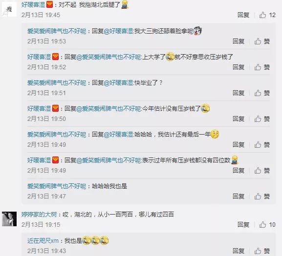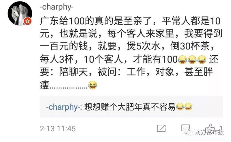 “记得从上学的时候开始,奶奶给我的压岁钱就固定在每年3000块了,一直给到我结婚。所以现在回想起来,如果考虑到物价因素,学生时代应该是我人生中最富裕的时光。”在上海工作的厦门网友莎莎这样调侃道,引来网友一片羡慕。