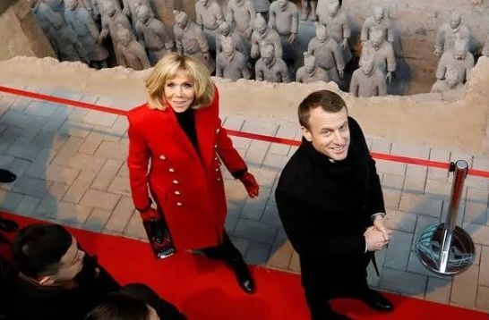 原来,不久前法国总统马克龙携妻子布丽吉特访华时,布丽吉特先后换过四套大衣,可谓一场十足的大衣时装秀。初到西安时,布丽吉特身着一件镶有两排金色纽扣的纯红色大衣,十足符合中国国旗的配色。外界发现,这件颇具喜气味道的大衣是法国时装品牌Balmain的2018冬季款,还未正式上市,已由总统夫人抢先一步将其作为国事访问的首秀之作。值得注意的是,Balmain品牌的生产地正是意大利纺织重镇普拉托,意大利时尚界和意大利媒体兴奋地自夸:凭借法国第一夫人中国行的穿着,“普拉托制造”已走上时尚前沿!