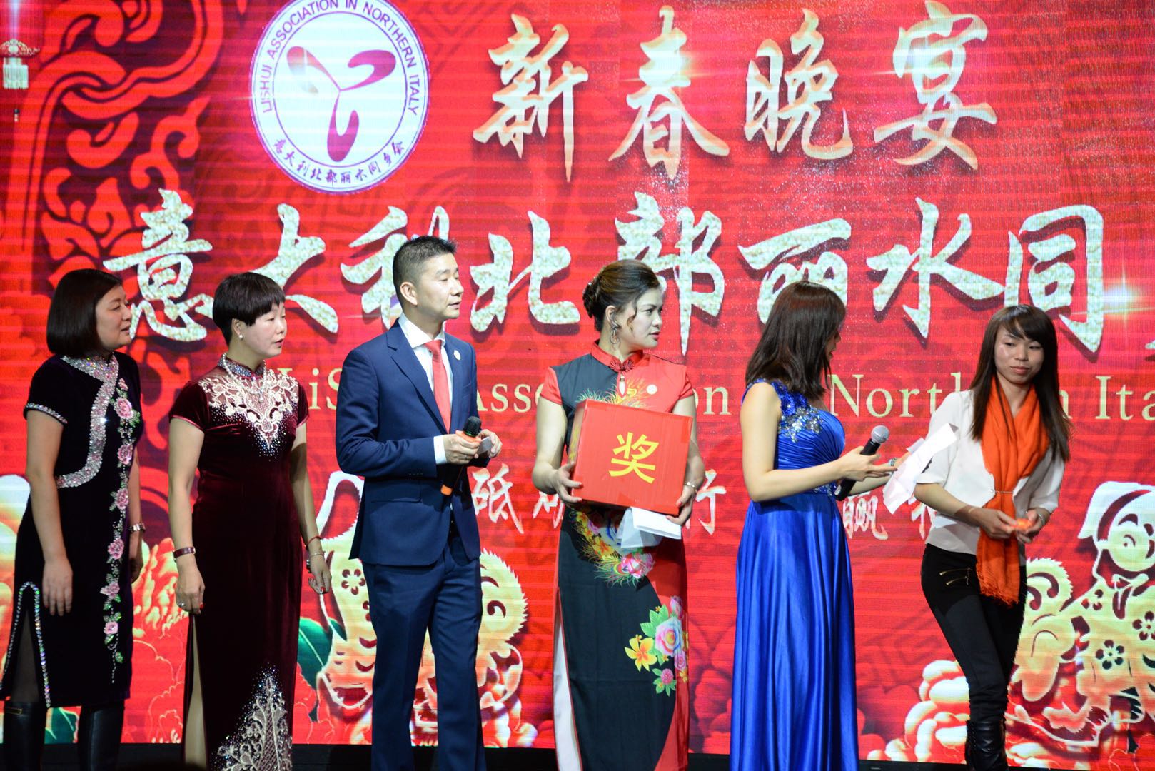 意大利《华人街》消息:2018年2月4日晚,意大利北部丽水同乡会假座米兰新希尔美食城宴会大厅隆重举行晚会,喜迎2018新春佳节。中国驻米兰总领事馆汪惠娟副总领事、蔡蕾主任,米兰侨界15个侨团的会长及代表,意大利北部丽水同乡会全体成员及家属代表,以及来自意大利北部的丽水籍侨胞逾300人出席晚会。