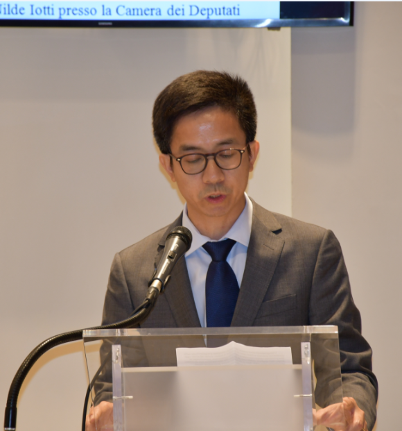意大利华人华侨参议委员会金慧主席向众议院议员介绍了意大利华人华侨参议委员会的华人组成人选,还就参议委员会的宗旨、法律程序及权力向大家作了说明。