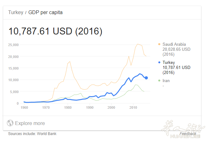 照理说,这块香饽饽不至于欧盟不想要啊,加上英国人民2016年拼死脱欧,欧盟理应愿意收下这个土耳其小弟啊,土耳其真心不是穷兄弟,2016年各项指标都是棒棒哒,GDP总值超越荷兰瑞典,世界第17大经济体。