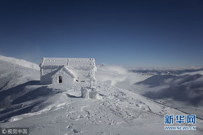 意大利山区小屋遭遇强暴风雪变“冰屋”