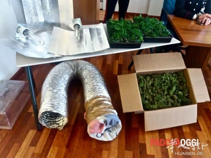 星期天和星期一之间的深夜在帕多瓦省Codevigo,宪兵们突袭进入Castelcaro乡村一个坐落在巴基廖内河岸边的独立农舍。建筑状况不好以及卫生状况很差。在里面有两名华人,除了生活在里面之外还将里面所有房间种满大麻,他门负责播种养殖和包装制作等一系列的过程。